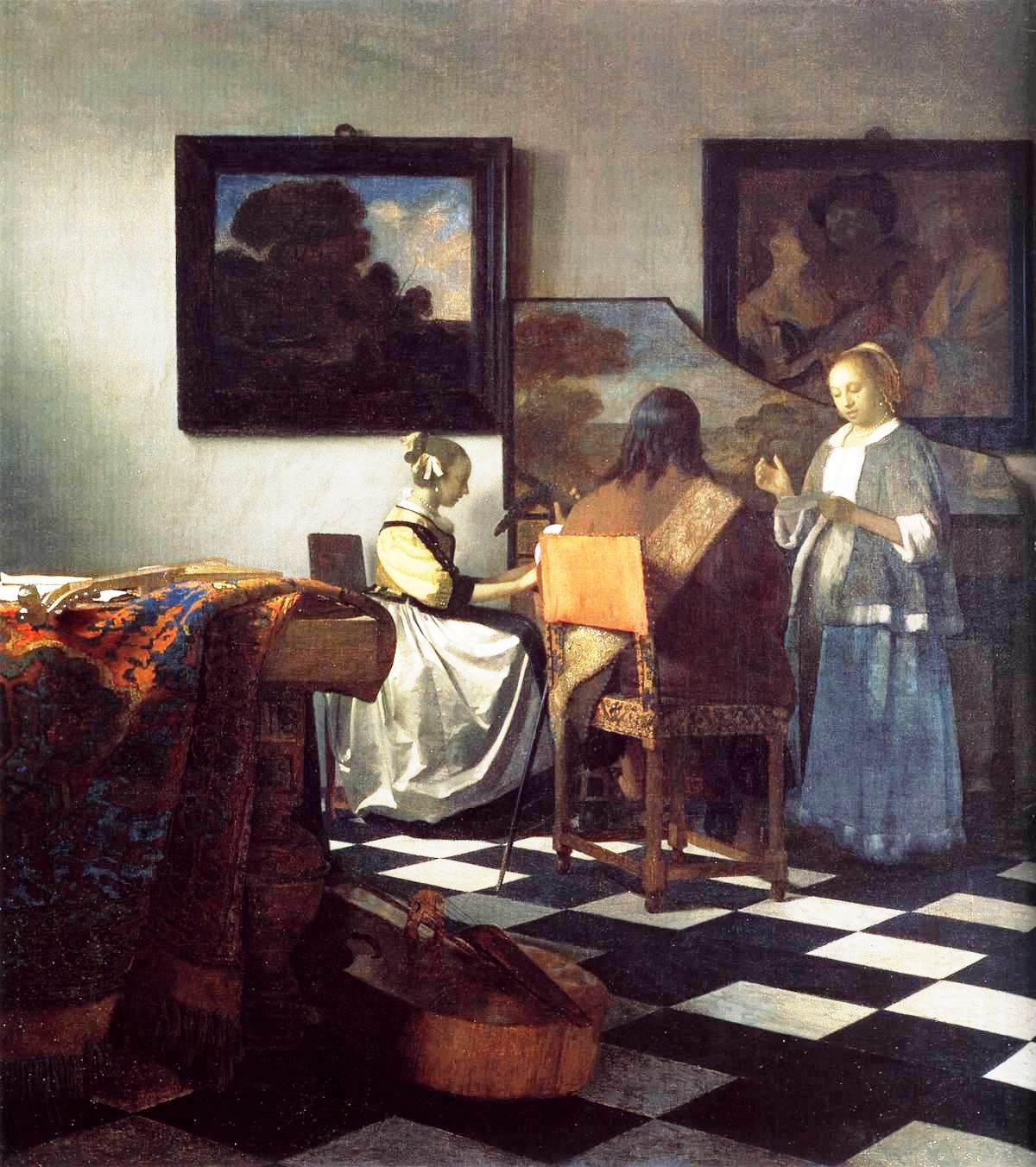 Your oil painting reproduction of "The Concert" by Johannes Vermeer will be handmade to replicate all the brushstroke details, colors, and shading of the original work of art. Please be assured that you will receive a magnificent oil painting.